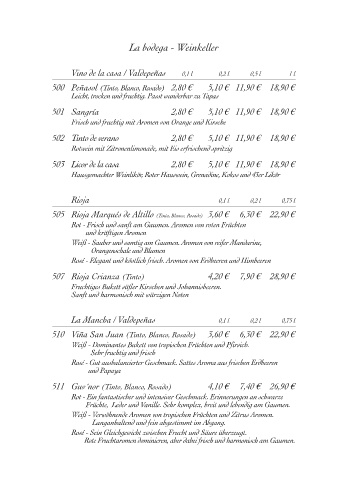 501 Sangría 2,80 € 5,10 € 11,90 € 18,90 €